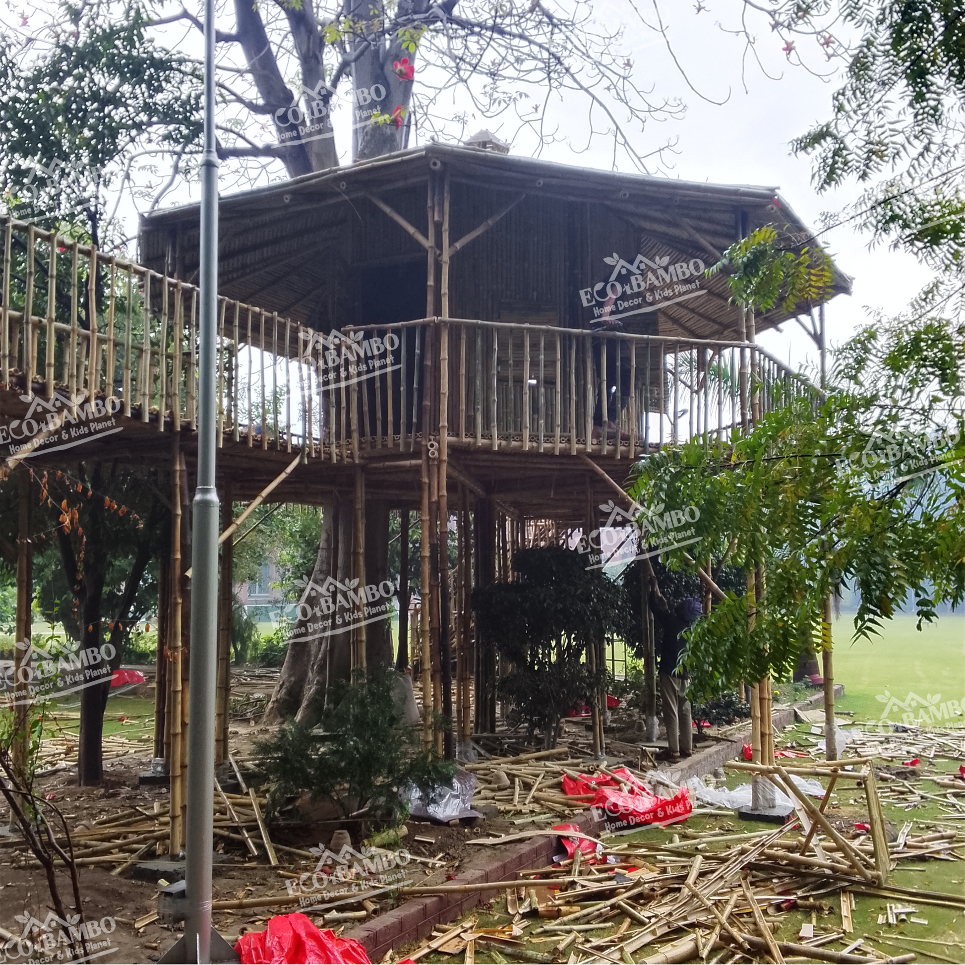This bamboo tree house is ideal for farmhouses, resorts, restaurants, cafes, parks, and outdoor sitting areas. Bamboo construction is environmentally friendly, durable, and gives a unique natural look.